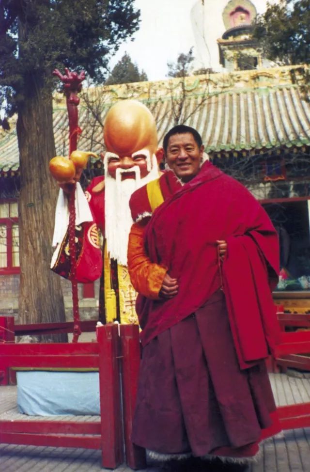 法王应班禅大师邀请赴京至班禅大师创办的中国藏语系高级佛学院讲经说法时在北海公园留影