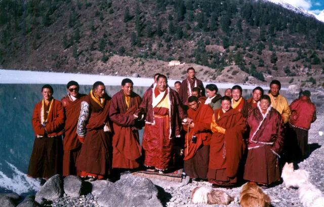 法王如意宝偕妹妹阿里美珠空行母、门措空行母等众弟子至著名的圣湖玉隆拉措,特意在此停留了两天,并安放了伏藏