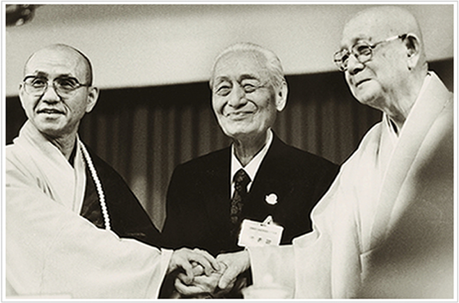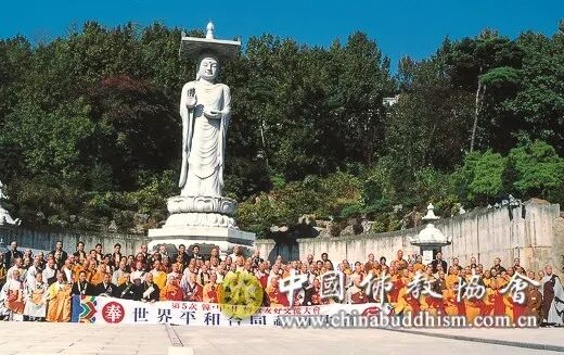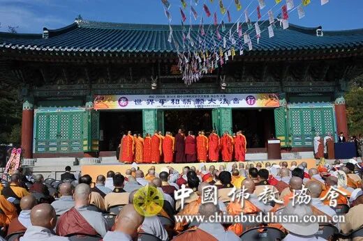 2002年10月29日,第五次中韩日佛教友好交流大会以及祈祷世界和平法会、“佛教与世界和平”国际学术演讲会、“佛教与环保”摄影展在韩国汉城举行。三国佛教代表团对当今时代发生的诸多战争和恐怖活动,依佛教的观点进行了分析,劝导世人实践大乘菩萨行,舍弃私欲,息灭贪瞋痴,增进相互了解,提倡慈悲包容。