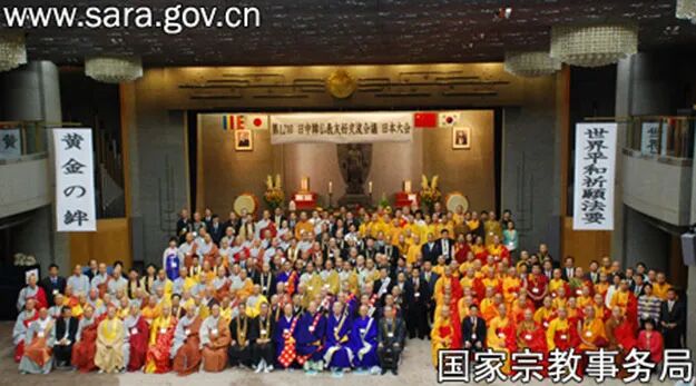 2006年10月26日,第九次中韩日佛教友好交流会议在日本京都、奈良举行。三国佛教代表期望将三国佛教“黄金纽带”关系扩展到全世界,以佛教智慧和慈悲的思想、和平与宽容的精神,促进世界各宗教的交流对话,为人类和睦、生态和谐、世界繁荣作出更大贡献。