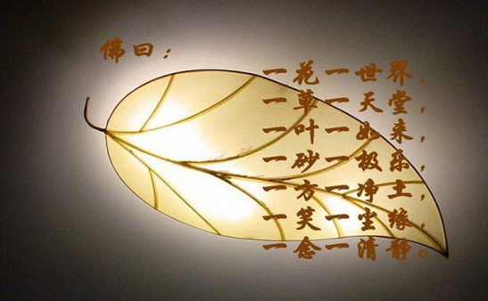 原文应是:一花一世界,一叶一如来出自《华严经》:昔时佛祖拈花,惟迦叶微笑,既而步往极乐从一朵花中便能悟出整个世界,得升天堂!