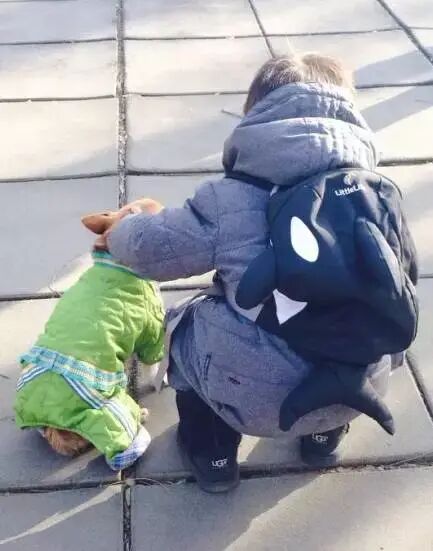 即便怀孕期间,也曾收养流浪动物。她的孩子等等很小,就邀请路遇的流浪猫回家,新捡的流浪狗和等等成了密友。