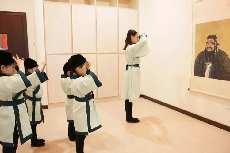 我们还精心安排了国学学堂。入学堂,遵古礼,咏诵、讲解《三字经》《弟子规》《论语》《孟子》……熟读精思,循序渐进,与仁慈的孔孟、睿智的老庄对话。