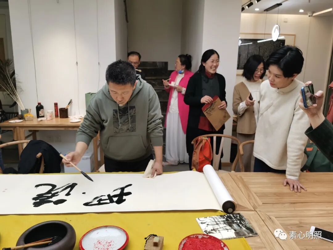 1668年前的那个春天,天朗气清,惠风和畅,王羲之和他的朋友们,仰观宇宙之大,俯察品类之盛,所以游目骋怀,足以极视听之娱,信可乐也。1668年之后的我们,也决定在这样的承平之世,高楼之中,俯仰之际,崇贤敬圣,瞻慕前人翰墨书迹,感受晋唐审美,写出我们现在的笔墨文心,表达我们对前人的继承与传习。如是,崇贤馆的素闻我就开始策划、组织、主持这场兰亭雅集,感恩崇贤馆主李克老师的全力支持,也有幸得到师友及小朋友们的厚爱,欢聚一堂,有诗、文、书、画、印、琴、曲、戏,吟诵,及绍兴黄酒,哈根达斯蛋糕,和大家一起缅怀晋唐审美,追慕古圣先贤,过一个中国人的上巳节。