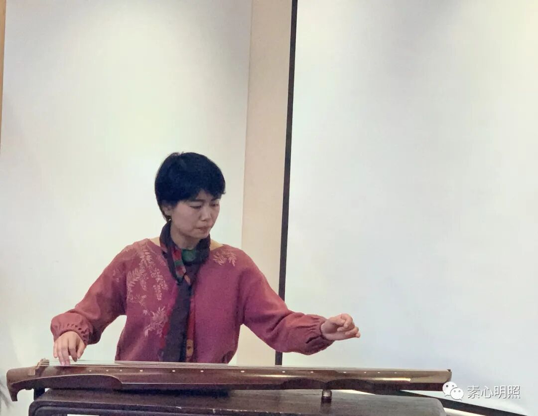 现场各自用不同的礼表达了对于古圣先贤的礼敬,北大哲学博士丘乐媛为大家现场弹奏了古琴名曲《流觞》,引大家步入兰亭曲水流觞的现场。